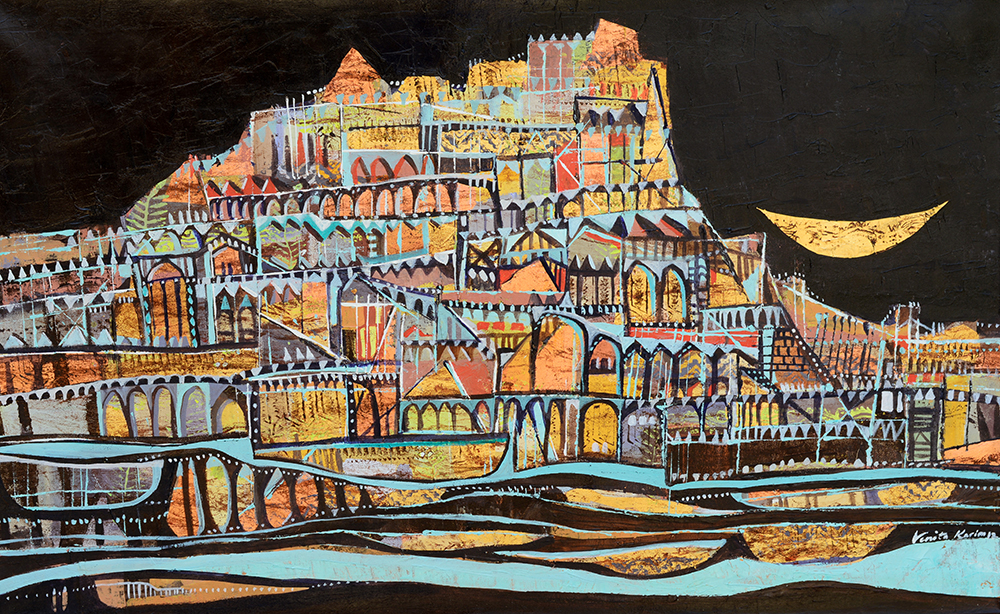 Acrylic, gold and copper leaf on canvas
