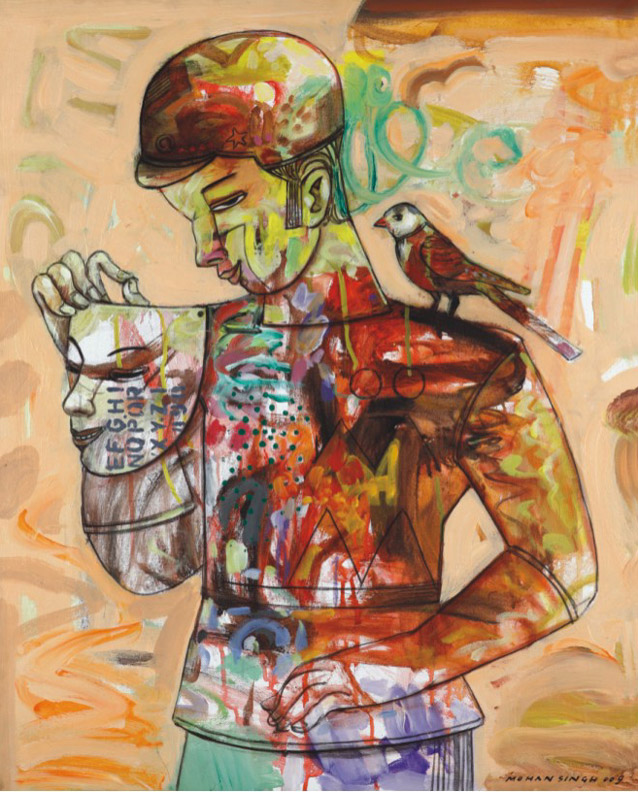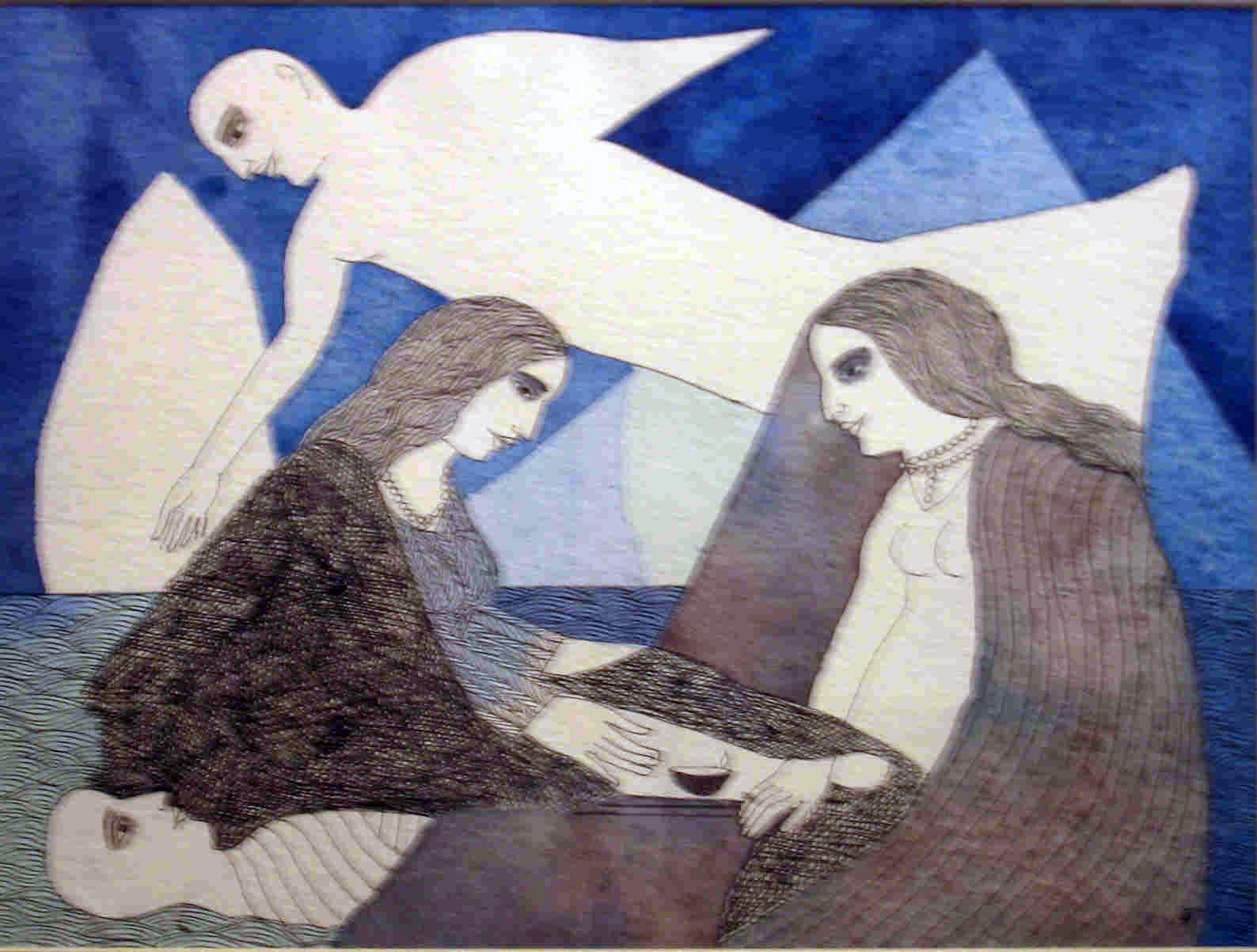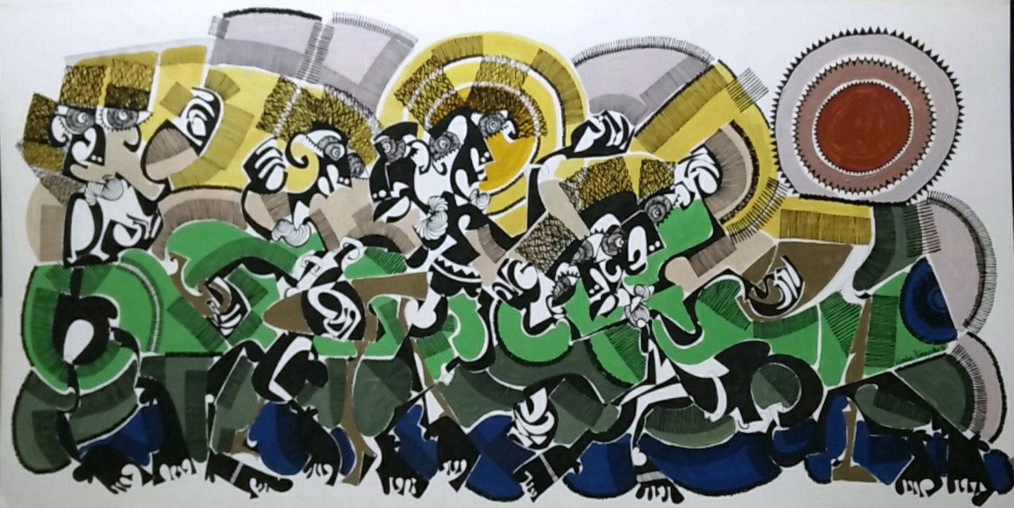 Acrylic and pen and ink on paper