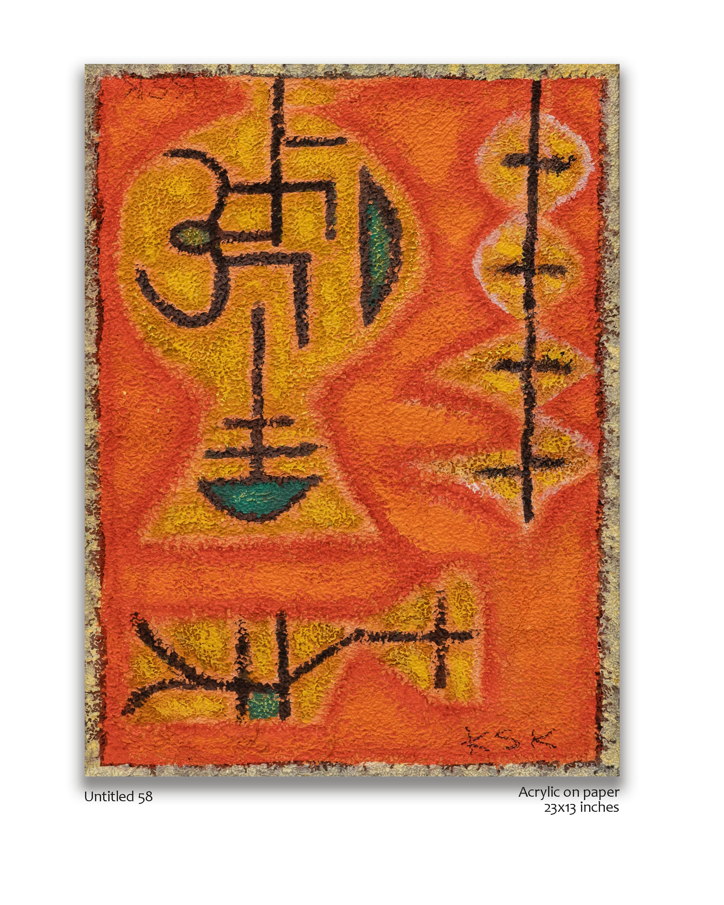 This exhibition by K.S.Kulkarni attempts to showcase his oeuvre during the 1980s and 1990s. His style was classic and contemporary at the same time. He could get inspired by the traditional and mould it in his unique way to create a very contemporary artwork. His work was hugely influenced by the primitive and sometimes becomes totally abstract, the lines and colours possessing an urgency, derived from a direct contact with nature, and a refinement, which is arrived at by intense and intentional honing of his craft. To quote A.S.Raman, “Kulkarni’s visual images are strong because of the rendering of colour, which is their flesh and blood, and the drawing, which is their bone structure.”